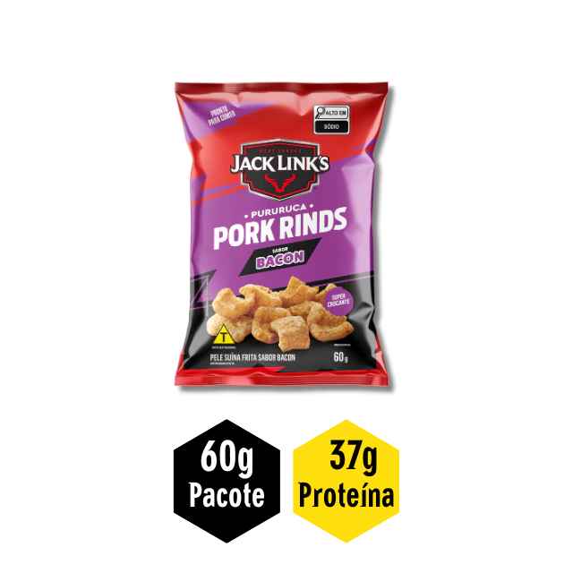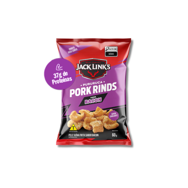 Pork Rinds Jack Link’s Sabor Bacon 60g: snack super crocante, pronto para consumo, com sabor bacon marcante e 37g de proteínas por embalagem.